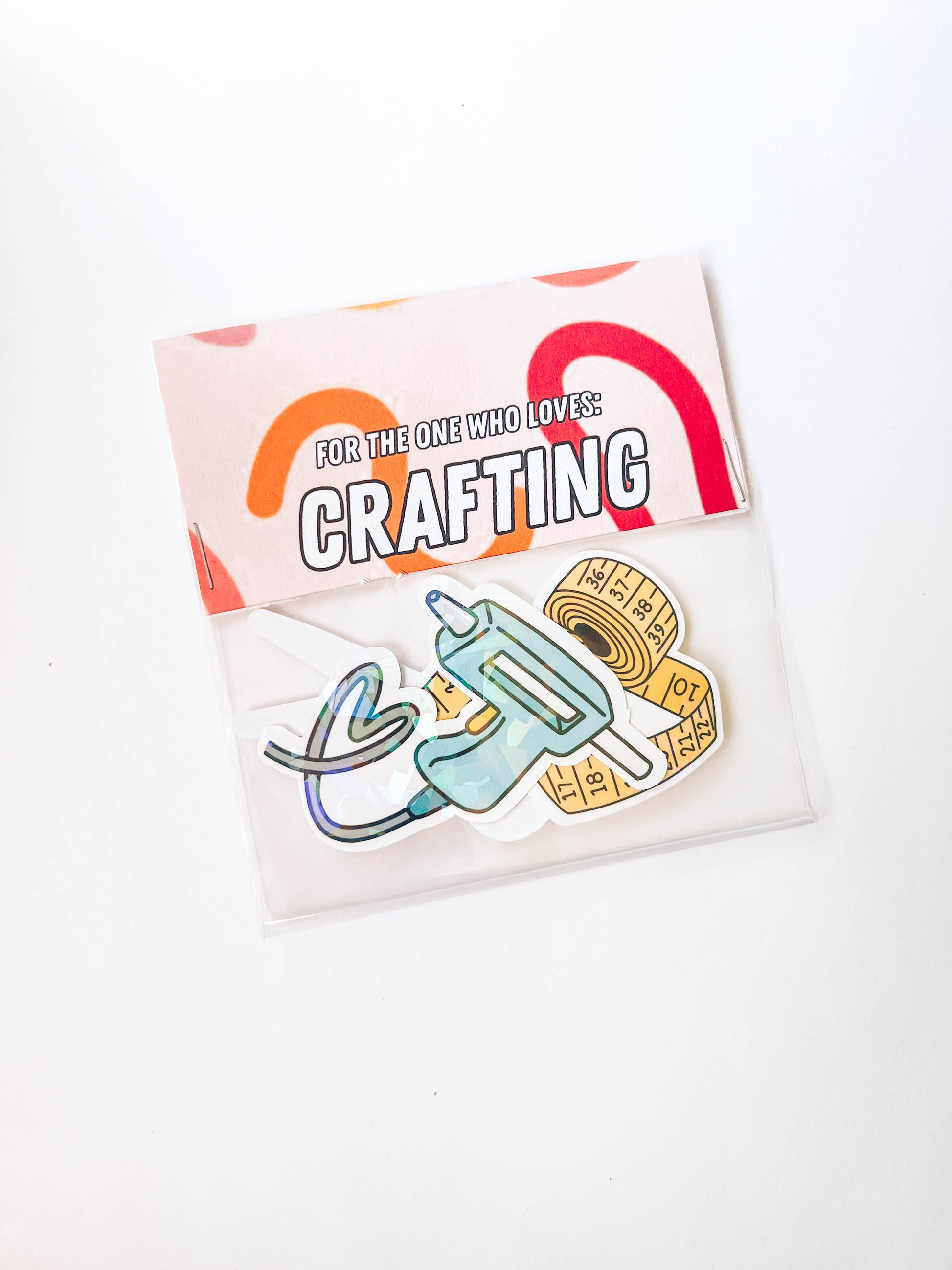 Each pack includes the following sticker designs: Hot Glue Gun, Scissors, Measuring Tape.