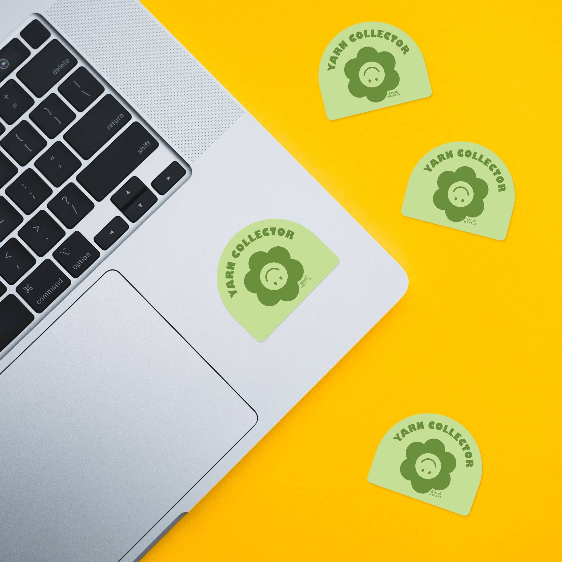 Show off your love for all things yarn with our Yarn Collector Sticker! This green vinyl sticker is perfect for any knitter or crocheter, and can be easily applied to water bottles, sewing machines, or even tablet cases.